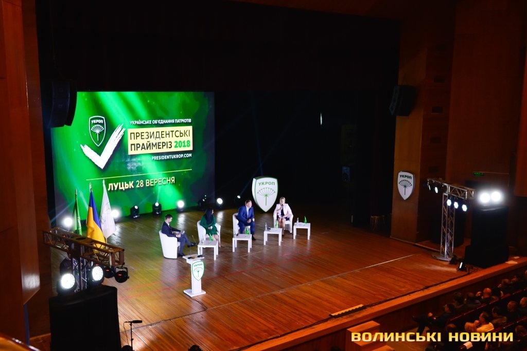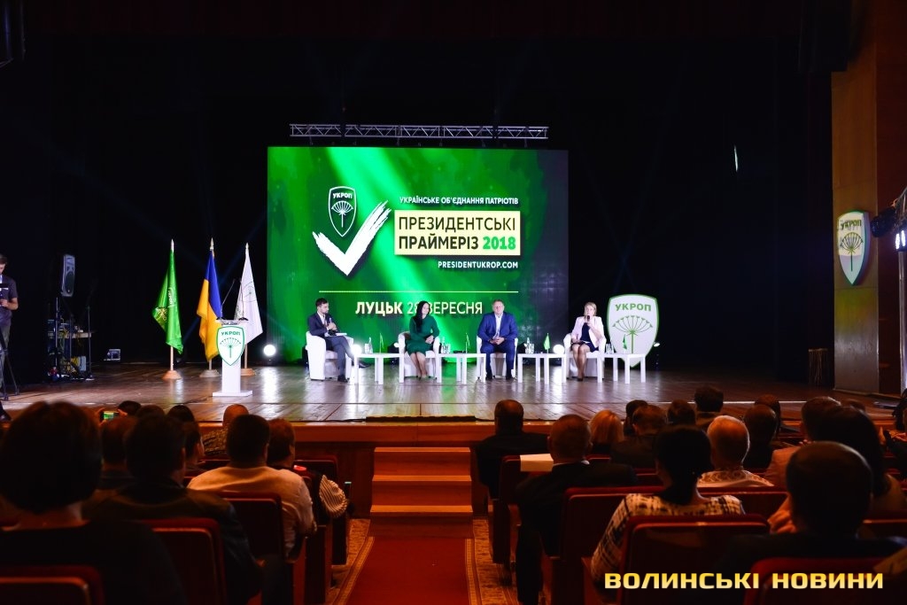 Свої програми презентували троє претендентів у кандидати в президенти від партії УКРОП Оксана Тунік-Фриз, Ірина Головатенко та Олександр Шевченко.Праймеріз як черговий етап боротьби за Україну