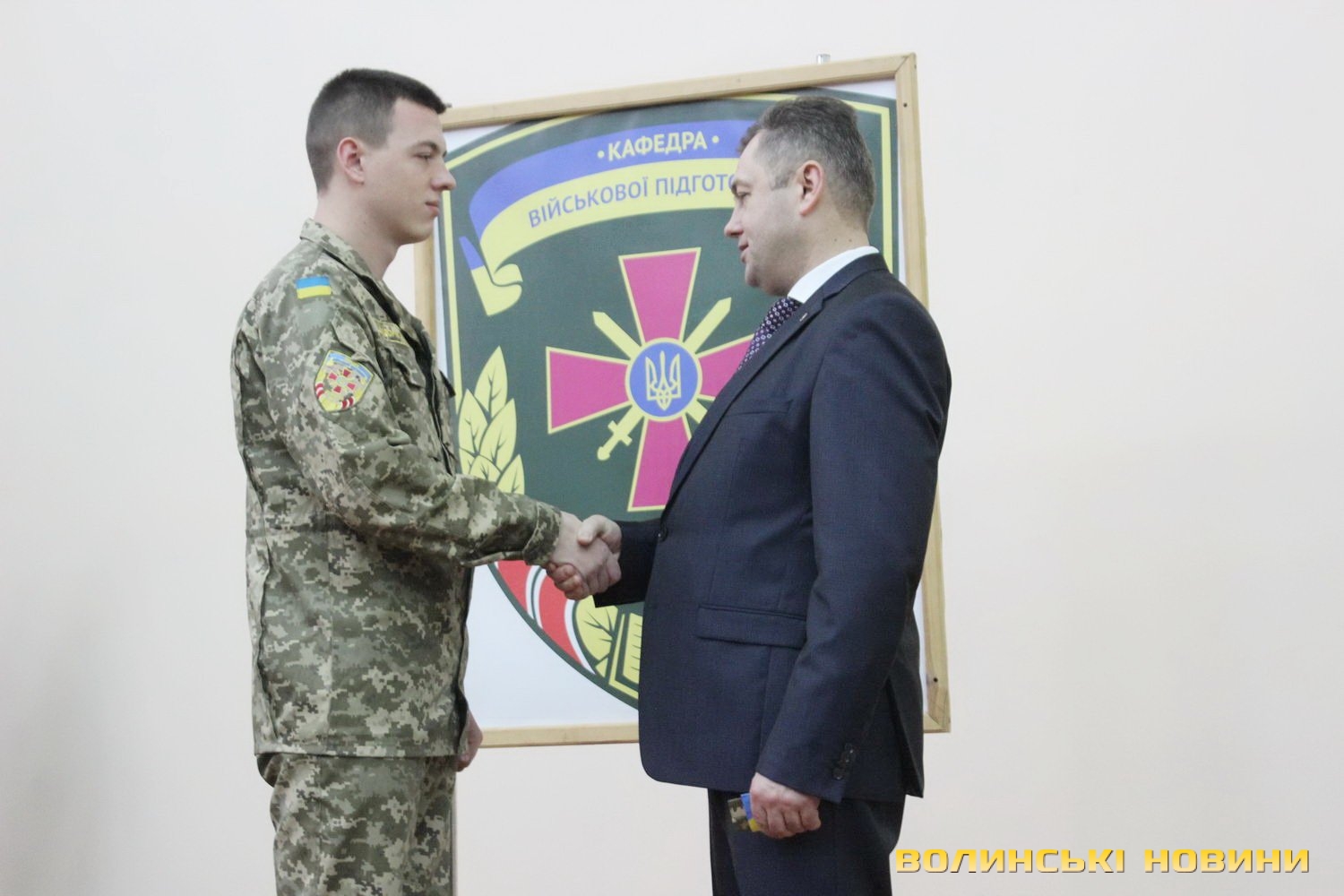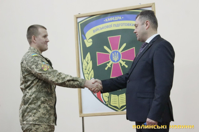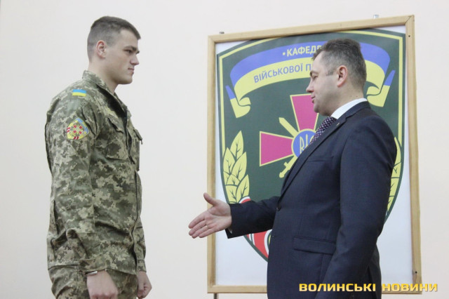 Урочистість із нагоди вручення погонів першим випускникам військової кафедри на території Волині відбулася у виші 17 січня.