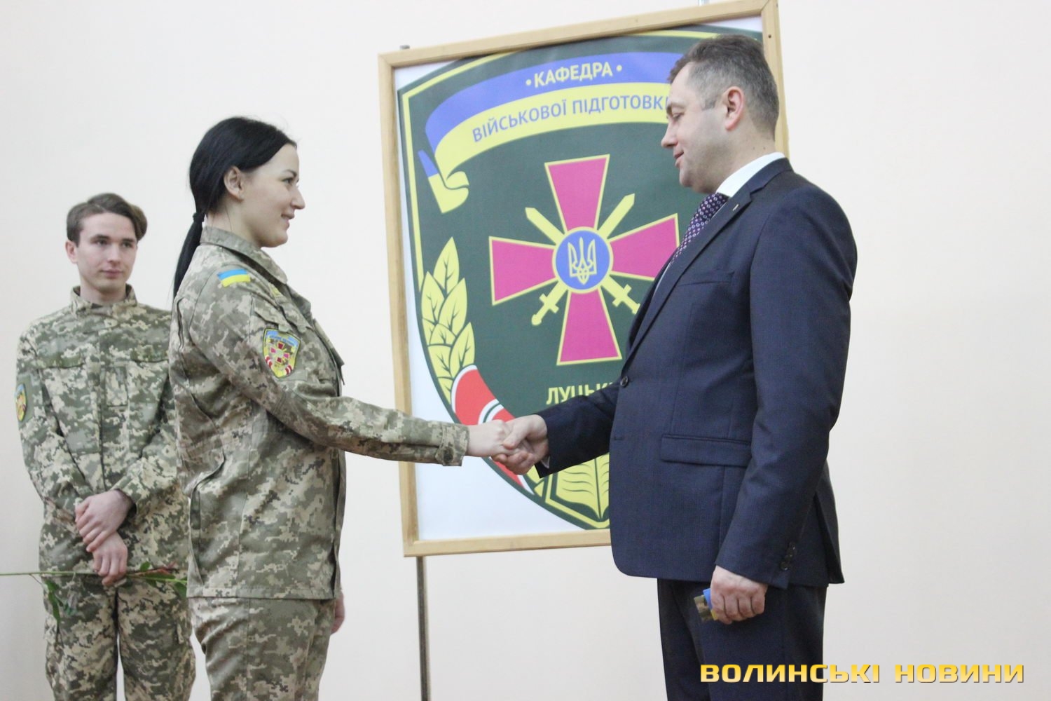 Зауважимо, що такого масового вручення погонів, відповідно до наказу Міністерства оборони України, у Волинській області ще не було. Окрім того, не всі випускники військової кафедри змогли прибути до університету, аби отримати погони. Деякі з них зараз проходять службу на сході країни, тому присвоєні звання вони одержать на зборах своїх військових частин.Так, 28 липня минулого року вперше Луцький національний технічний університет випустив курсантів військової кафедри. Тоді ж молодь, котра вибрала військове майбутнє, присягла на вірність народу України.