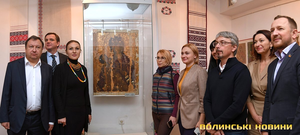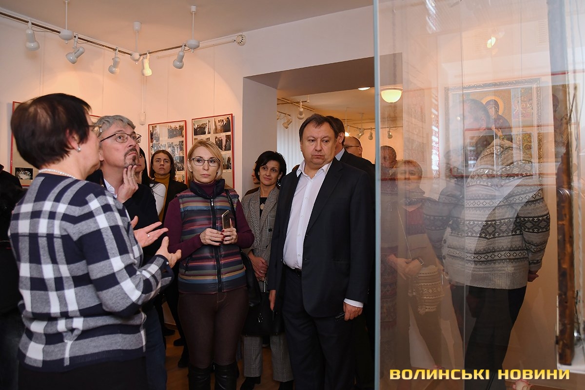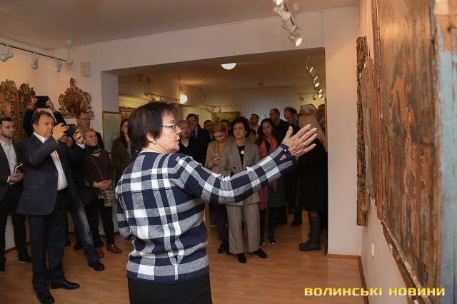 Із облдержадміністрації делегація вирушила до Музею волинської ікони, з діяльністю котрого присутніх ознайомила очільниця закладу Тетяна Єлісєєва. Вона розповіла, що, попри труднощі, колекція установи постійно поповнюється новими творами іконопису.«Зараз ми представляємо 132 пам’ятки... Ми маємо гарну співпрацю з керівниками наших православних єпархій у плані передачі до нашого музею ікон», – сказала Тетяна Єлісєєва і додала, що заклад містить унікальні пам’ятки, зокрема «твори вершини іконопису».Згодом делегація розділилася на дві групи: перша вирушила до Луцької центральної міської бібліотеки для дітей, а друга на запрошення нардепа Ігоря Палиці поїхала до Луцького перинатального центру