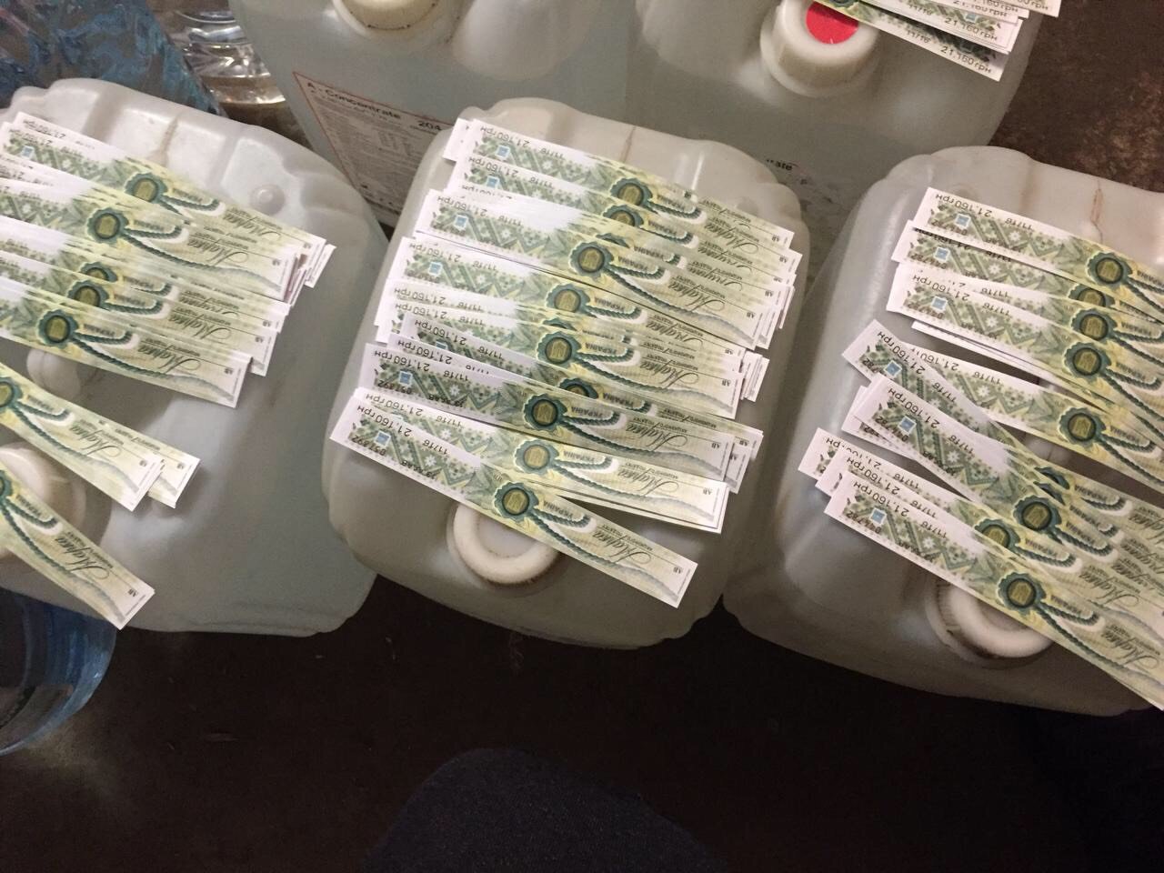 горілчаної продукції, марки акцизного податку з очевидними ознаками підробки, порожні скляні пляшки з наклейками відомих виробників, корки, пластикову тару, шланги, лійки спиртометри, що використовувались в ході здійснення протиправної діяльності.