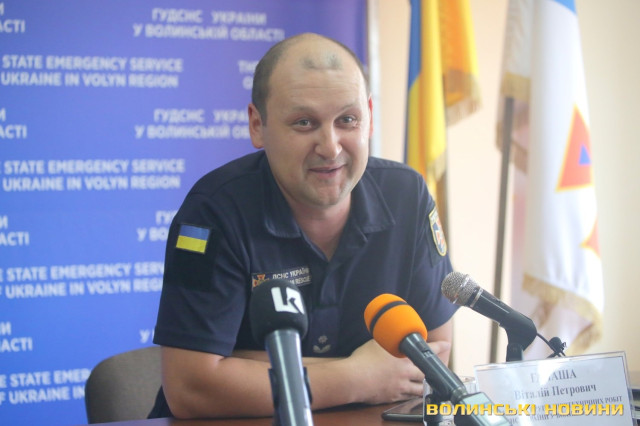 Начальник групи піротехнічних робіт ГУ ДСНС Волинської області Віталій Галаша під час брифінгу щодо роботи піротехніків на Чернігівщині розповів про специфіку розмінування, «сюрпризи» від окупантів та пса Патрона.