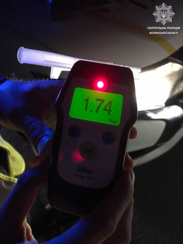 1,74 проміле зафіксували у порушника, який керував автомобілем також під час дії комендантської години в місті Ковелі на вулиці Героїв України.
