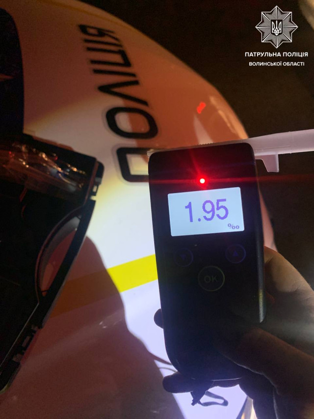 1,95 проміле показав Drager у керманича, якого виявили патрульні у Луцьку на вулиці Ковельській. Автівку з нетверезим водієм встановили за допомогою орієнтування.