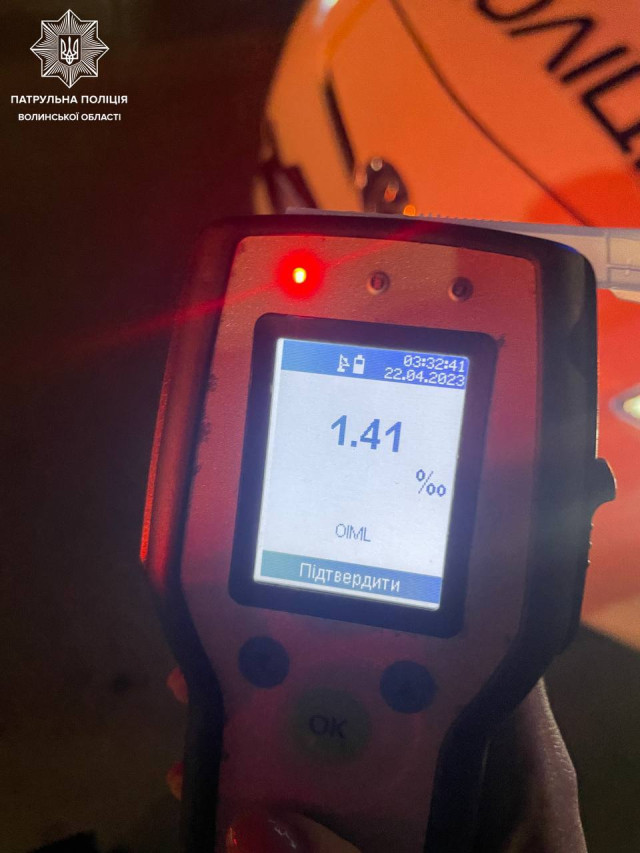 1,41 проміле прилад Drager показав у чоловіка, який керував транспортним засобом на вулиці Гнідавській у Луцьку під час дії комендантської години.