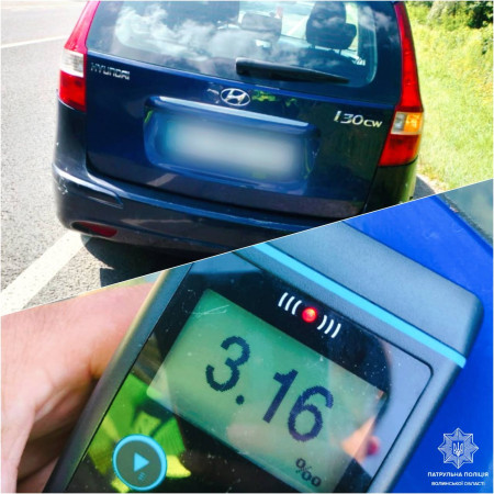 Під час спілкування інспектори виявили в керманича ознаки алкогольного сп’яніння. Огляд на Драгері показав 3,16 проміле – це більш ніж у 15 разів перевищує норму.
