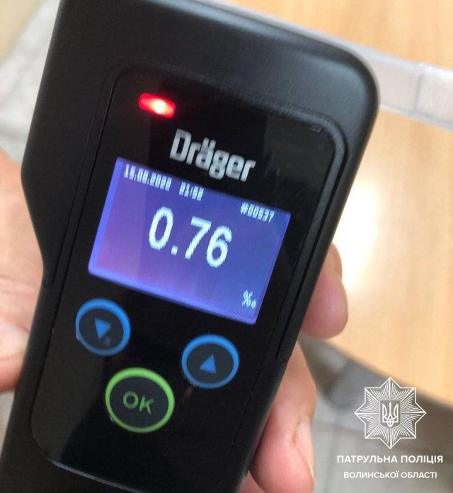 Окрім того, в кермувальника виявили ознаки алкогольного сп’яніння. Огляд у медичному закладі показав результат у 0,76 проміле, що майже в 4 рази перевищує допустиму норму.