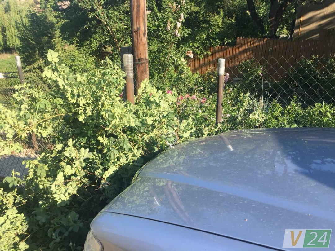 У Луцьку на вулиці Степана Мазурця п'яний водій на «Мерседесі» збив стовп і наїхав на кущ троянд.