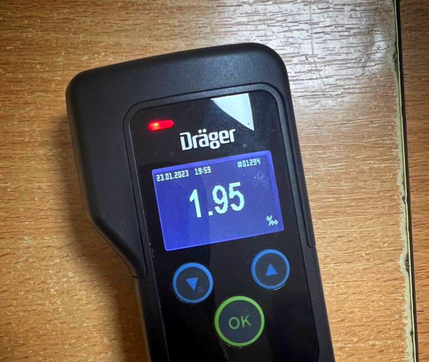 Чоловік мав явні ознаки алкогольного сп’яніння, однак проходити тест на приладі Drager відмовився. Крім того, поводився агресивно та намагався втекти з місця події. Щодо громадянина патрульні застосували спецзасіб кайданки та доставили його в медзаклад. Лікар зробив висновок, що водій – нетверезий, результат – 1,95 проміле.