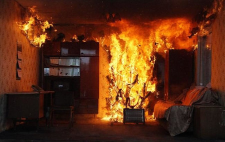 Як зазначається, власник квартири, який перебував у стані алкогольного сп’яніння, розпалив багаття посеред кімнати.