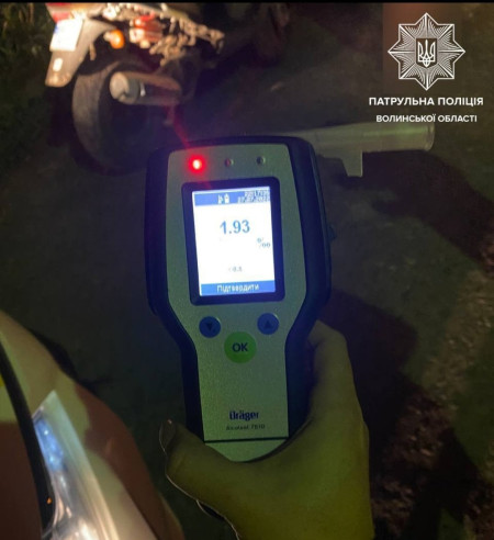 Під час спілкування охоронці порядку в порушника виявили ознаки сп’яніння. Водій пройшов огляд на стан алкогольного сп’яніння за допомогою приладу Drager. Результат ─ 1. 93 проміле, що перевищує допустиму норму у 10 разів.