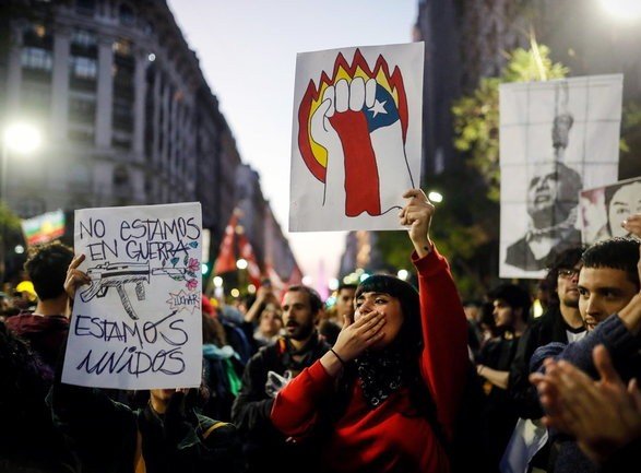 У понеділок в столиці та інших містах країни знову пройшли масові протести проти соціальної політики уряду, які супроводжувалися зіткненнями з правоохоронними органами. За даними поліції Чилі, на площі Бакедано в правоохоронців кидали пляшки із запальною сумішшю.