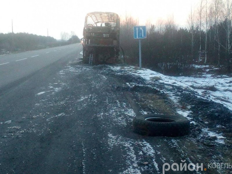 Під Ковелем на дорозі досі стоїть автобус, який згорів більше місяця тому