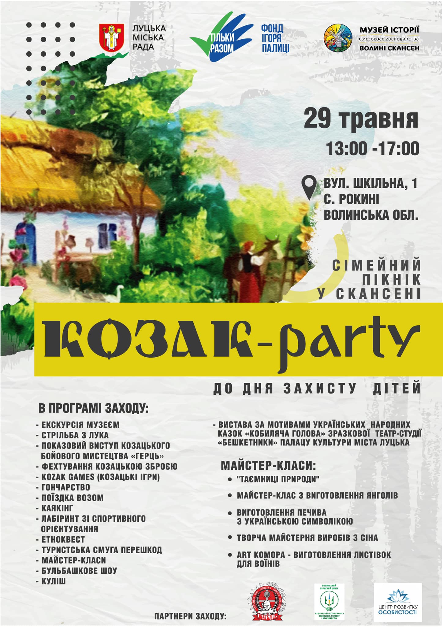 У Музеї історії сільського господарства Волині, що у Рокинях під Луцьком, 29 травня відбудеться розважальне дійство – сімейний пікнік у Скансені "КОЗАК-party".