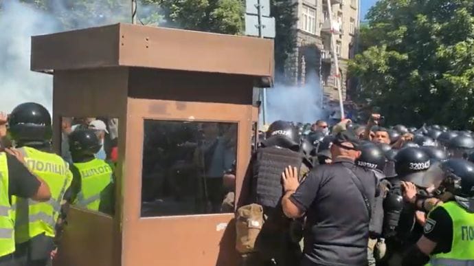 Під Офісом президента мітингує Нацкорпус: запалили димові шашки, поліція застосувала сльозогінний газ