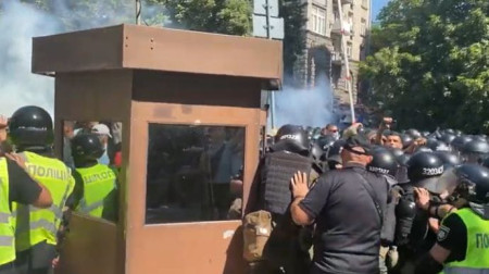 Між представниками «Національного корпусу», які прийшли мітингувати під Офіс президента, та представниками Національної поліції сталися сутички.
