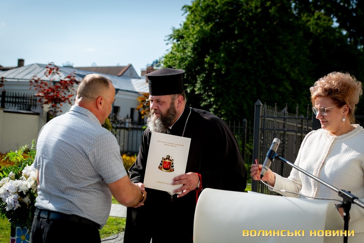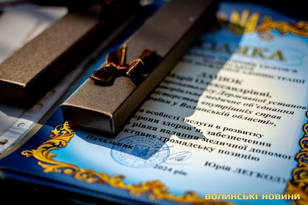 За самовіддане служіння, високий професіоналізм та громадські чесноти під час війни України за свою незалежність Василь Князевич вручив почесні грамоти Дмитрові Щуру, Тетяні Ткачук, Валентині Пришко, Валентину Орлову, Олені Максименко, Марії Дацюк, Ользі Піддубній, Галині Романюк, Сергію Коту, Тарасові Морозу.Почесні грамоти за багаторічну громадську діяльність, професіоналізм, високі духовно-моральні якості, вагомий особистий внесок у розвиток руху милосердя від Волинської ОВА вручили також Валентині Пришко й Тарасові Морозу. Від обласного управління охорони здоровʼя почесні грамоти отримали Марія Дацюк, Валентин Орлов, Галина Романюк, Ольга Піддубна.Почесною грамотою за сумлінну і наполегливу працю, відданість справі й високий рівень професійної майстерності, гуманітаризму та милосердя, надання висококваліфікованої медичної допомоги населенню області та вагомий особистий внесок у розвиток галузі охорони здоровʼя голова Волинської обласної ради Григорій Недопад нагородив Олену Максименко й Тетяну Ткачук.«Перемога дається дуже важкою ціною. Війна забирає найкращих. Гинуть і військові, і цивільні. Ворог не перестає обстрілювати наші прикордонні території. Є люди дуже відважні, які рятували людей і за життя інших віддали своє. Я вірю, що такі люди потрапляють у рай. Бог забирає їх до себе. І я думаю, що там вони моляться за те, щоб у нас був мир, щоби наші люди жили спокійно, щоби дітки не знали, що таке війна, а головне – болю втрати рідних, – відзначила у своєму виступі заступниця голови ОДА Мирослава Якимчук. – Нам відомо, що серед волинян наразі є троє медиків, які полягли на війні. Це Сергій Власюк, Петро Гараджук, Юрій Громик. Царство небесне і вічна памʼять...»