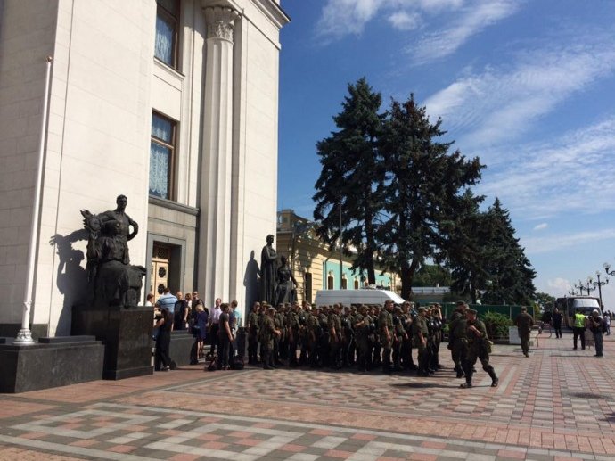 Згодом охорону парламенту ще більш посилили представниками Нацгвардії, які із шоломами та засобами спецзахисту долучились до заходів безпеки.