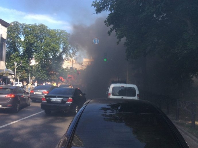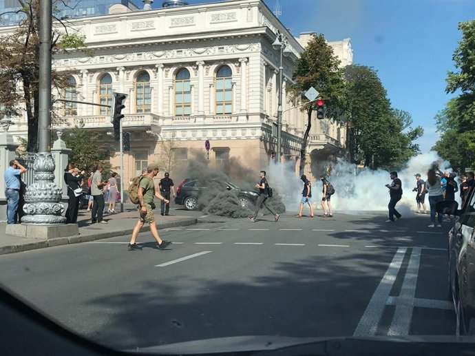 На вулицю хтось кинув димову шашку, проїжджаючи частина не перекрита, повідомляє кореспондент агентства. Відзначається, що на площі Конституції встановили сцену з колонками. У Маріїнському парку знаходиться понад 1 тис людей. Вони розосереджені по всьому парку. Агентство пише, що охорона будівлі парламенту посилена, присутні поліцейські і нацгвардійці.