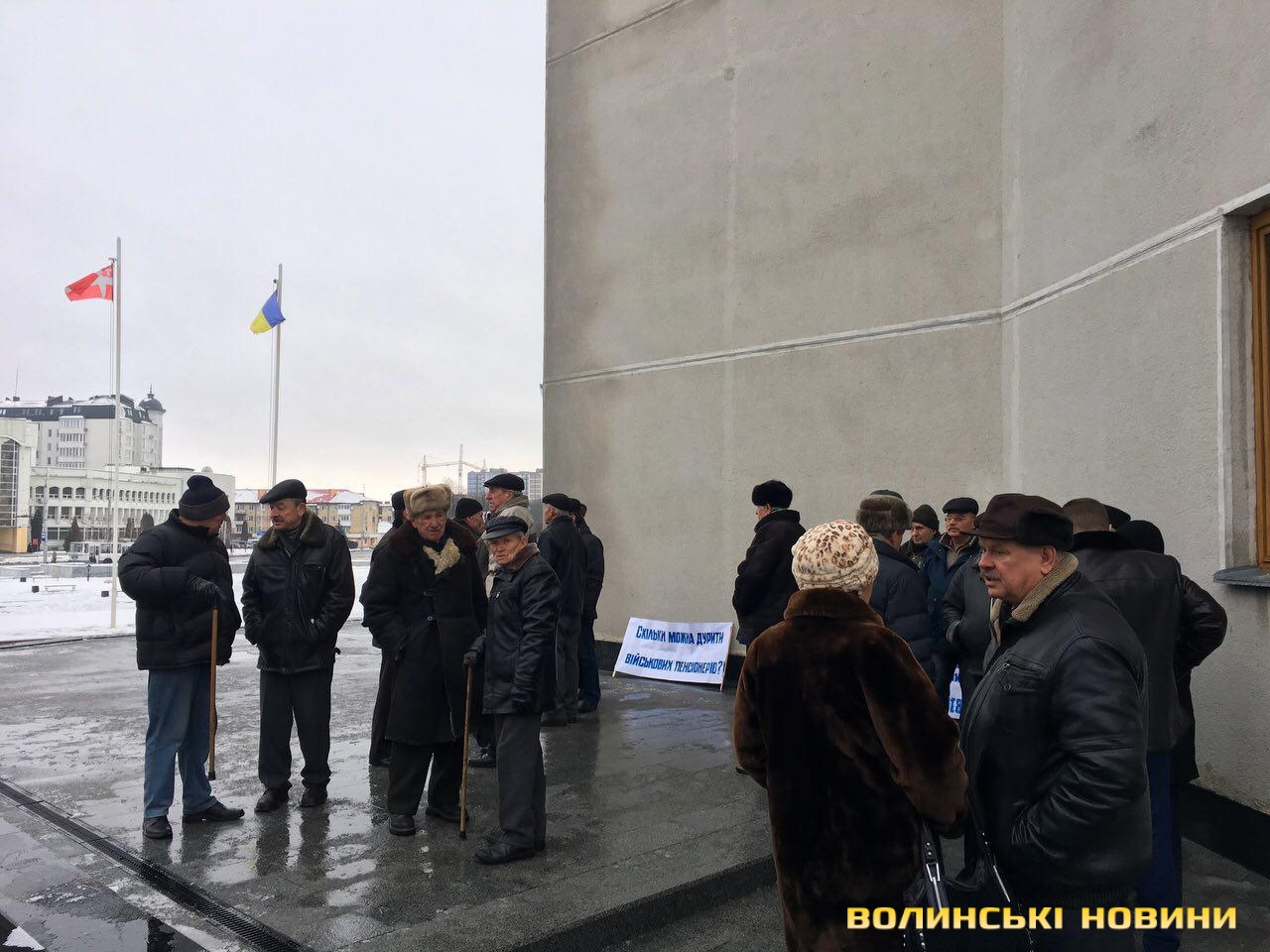 Аби вчергове нагадати про свої вимоги, військові пенсіонери зібралися поблизу Волинської ОДА.