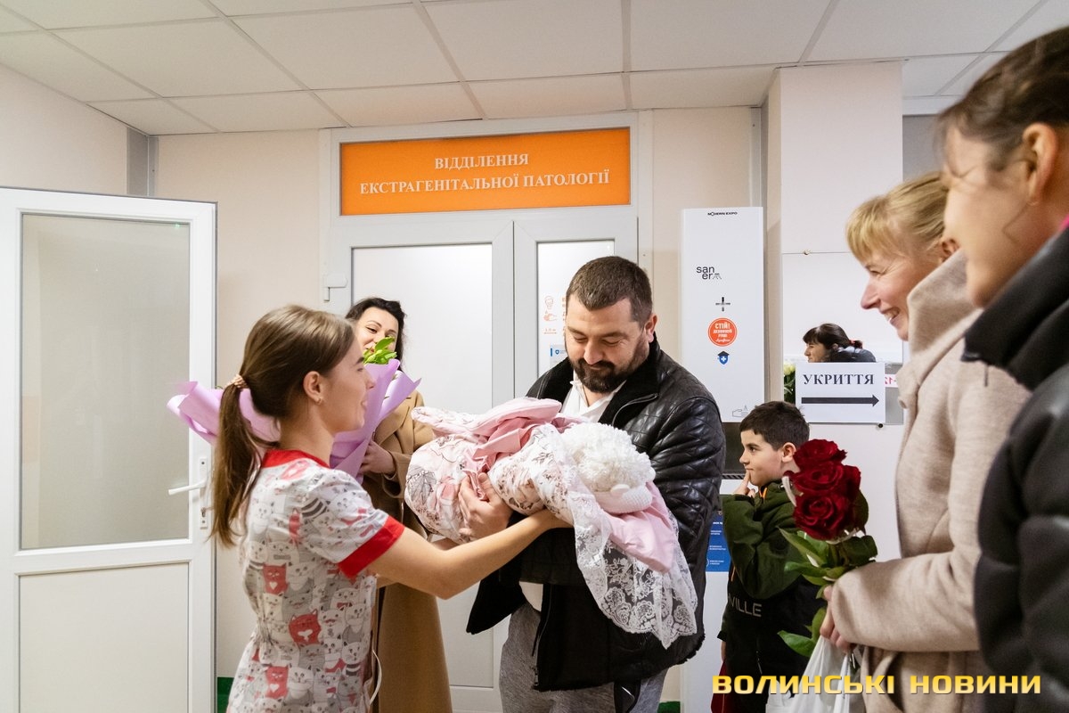 Біля входу у перинатальний центр – чоловік і жінка з букетом квітів.Це прадідусь і прабабуся чекають на виписку правнучки. 3 березня внучка Анастасія Риковська подарувала родині здоровеньку дівчинку вагою 3700 г.«Ми із села Цеперів Луцького району. У внучки почалися перейми, тому привезли до Луцька. Вдень привезли і на вечір кесарили. Хвилювалися за те, як відбудуться пологи в умовах війни, чи не доведеться народжувати у підвалі. Дівчинку назвали Мирославою, аби в Україні швидше настав мир», – розповідає прабабуся маленької Миросі Антоніна Кухар.Жінка похвалилася, що має вже п’ятьох внучок і одну правнучку.