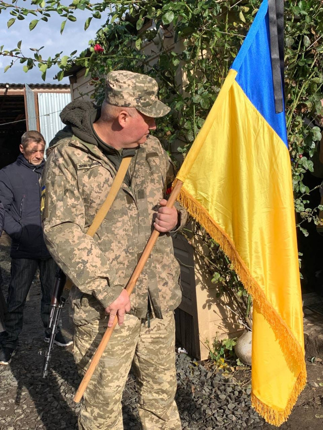 З усіма військовими почестями тіло Анатолія Кошелюка віддали землі.Дружині Героя Вікторії Кошелюк вручили прапор пошани.