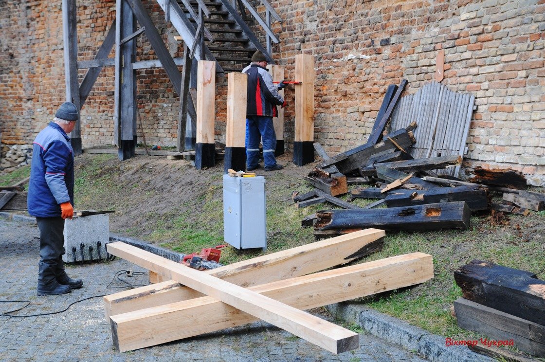 На території Луцького замку 1 лютого здійснюють роботи із заміни частини дерев'яних конструкцій сходів у Музей дзвонів, що у Владичій вежі.