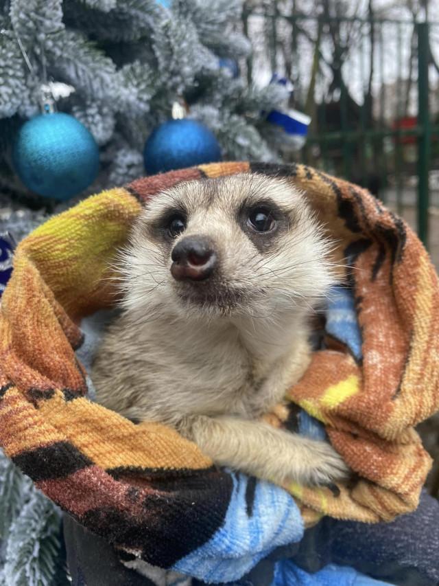 Окрім того, маємо теплу історію про те, що подарунок до Різдва отримав від колишніх господарів і сурікат Крістіан. Як ви пам’ятаєте, він у нас з’явився два роки тому – приїхав з Києва скласти товариство двом самичкам, які свого часу прибули з Варшавського зоопарку. Уточнимо, що із завданнями розважати сурікаток він впорався, тому тварин вже не троє, а семеро (народилися у Крістіана 3 доньки і синочок).А з колишньою родиною суріката ми були на постійному зв’язку, бо вони ніколи про нього не забували і час від часу робили подарунки. Як і от зараз – передали речі, які є вкрай необхідними для забезпечення комфортних умов проживання сурікатам.