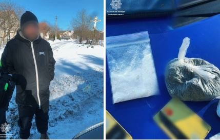 Під час перевірки у чоловіка виявили зіп-пакет із білою порошкоподібною речовиною та пакет із речовиною зеленого кольору рослинного походження, зовні схожою на наркотичну.