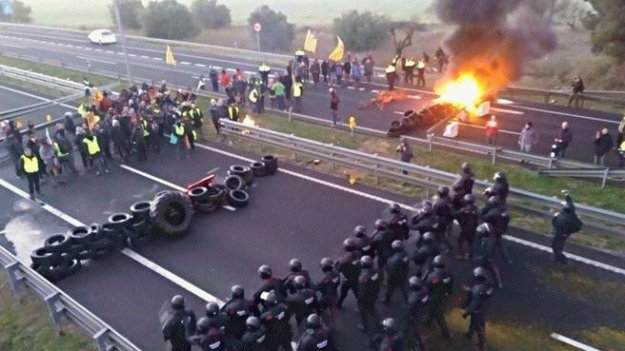 Місцеві органи влади попередили водіїв про труднощі у русі транспорту на основних дорогах Барселони та автомагістралях інших міст Каталонії, а також про заблоковані залізничні колії. На одній з трас протестувальники розклали і підпалили шини.