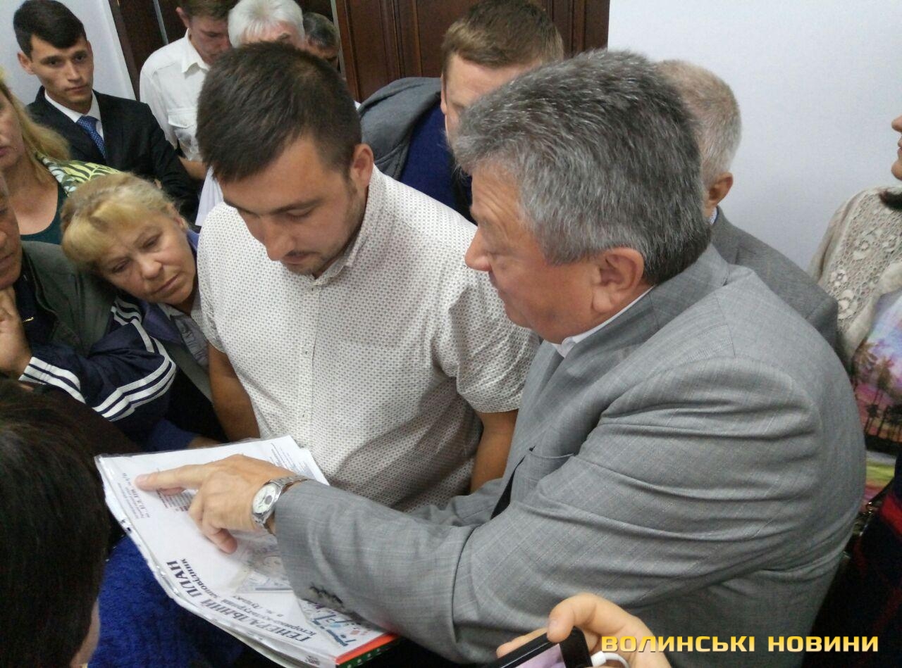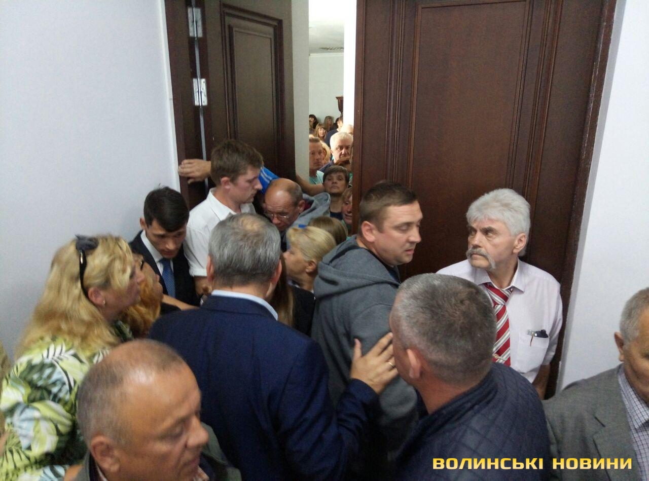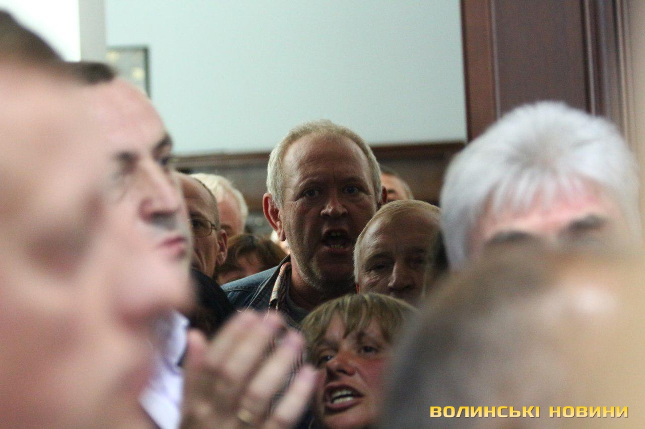 Підприємці Центрального ринку перекрили депутатам міськради вихід із зали засідань. Вони невдоволені рішенням щодо відмову ВОЛИНСЬКІЙ ОБЛСПОЖИВСПІЛЦІ у поновленні договору оренди землі для обслуговування ринку «Центральний» на вулиці Глушець, 1 (площею 0,5904 га), прийняте під час 30-ї сесії міськради сьогодні, 30 серпня.
