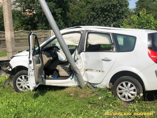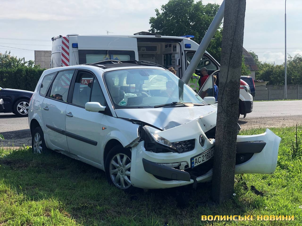 На виїзді з Луцька авто влетіло в стовп. Серед потерпілих – двоє дітей