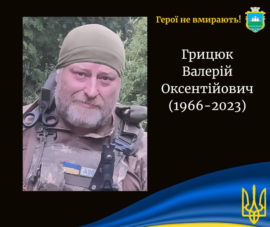 29 листопада 2023 року в районі населеного пункту Роботине Пологівського району Запорізької області загинув Захисник з Каменя-Каширського Грицюк Валерій Оксентійович, інформують в громаді.