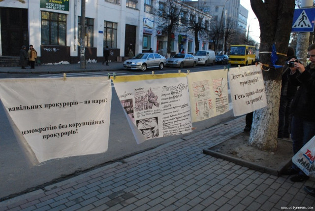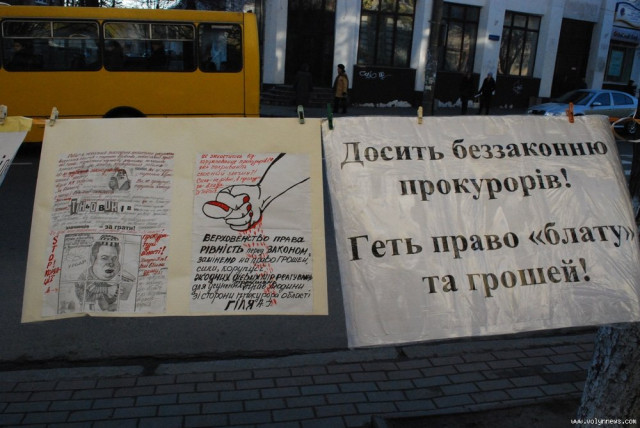 Волинську прокуратуру в Луцьку 6 грудня пікетували громадяни, які протестували проти корупції в державних органах та вимагали відставки глави прокуратури Андрія Гіля. Водночас, на тому ж місці, проходила акція на його захист.