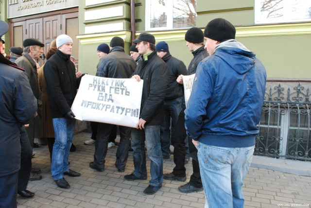 Як розповів представник Волинської правозахисної групи Микола Нікітюк, активісти організації зібралися, аби звернути увагу комісії Генеральної прокуратури на ситуацію на Волині. Він упевнений – прокуратура неналежним чином виконує покладені на неї законом обов’язки.