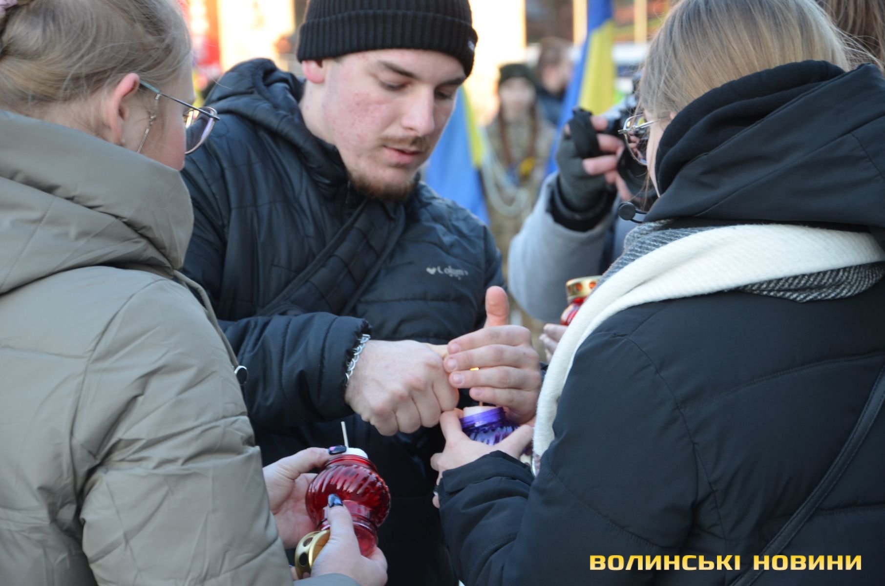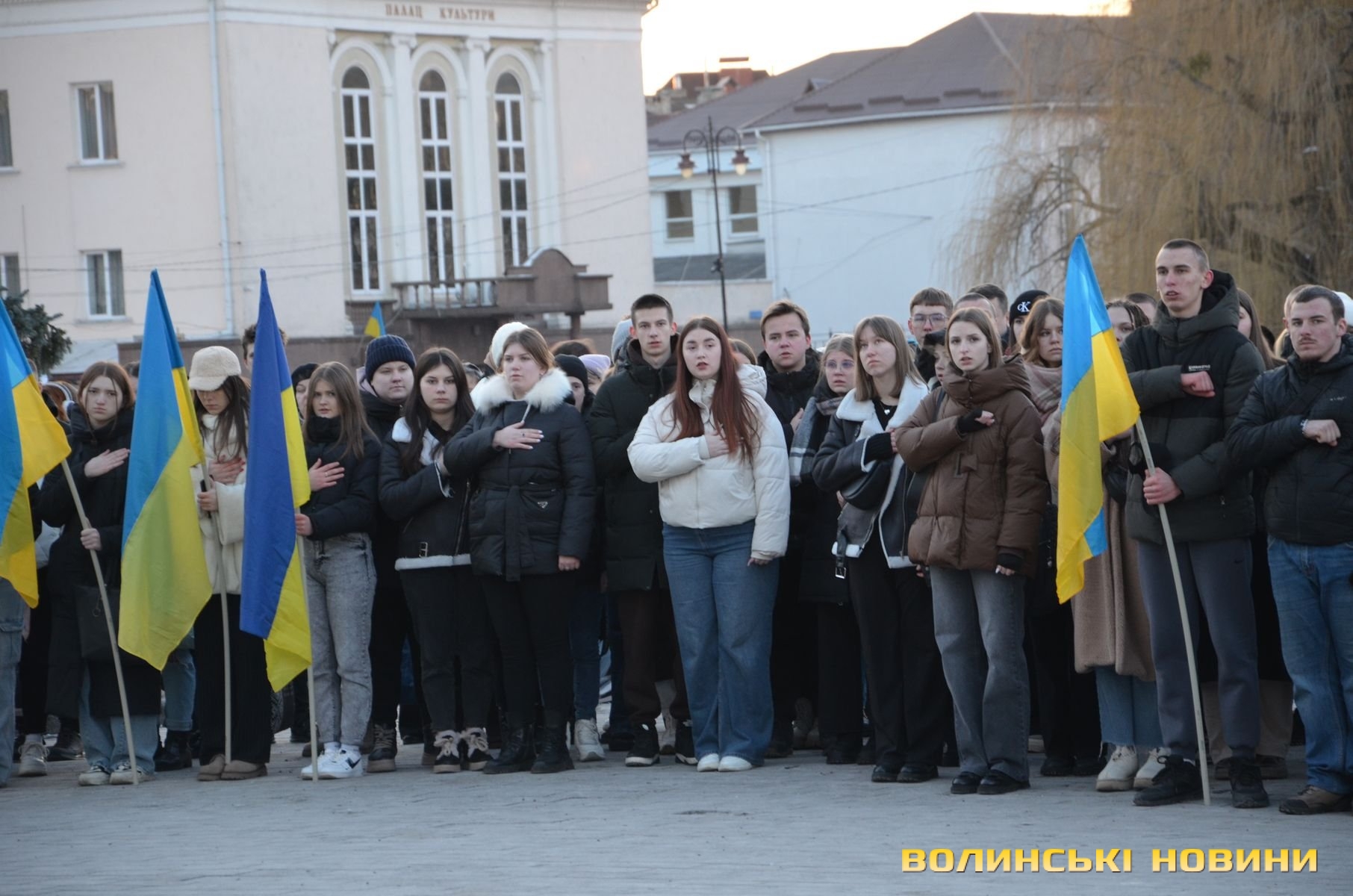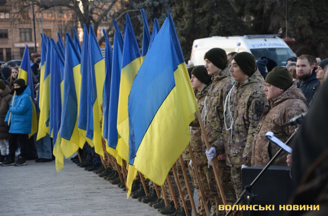 В обласному центрі Волині у форматі віче вшанували подвиг учасників Революції Гідності. Пам’ятний захід розпочався надвечір на Театральному майдані біля фотостенду Героїв нескореної України. До нього долучилися небайдужі жителі міста, ліцеїсти, студенти, активна молодь.
