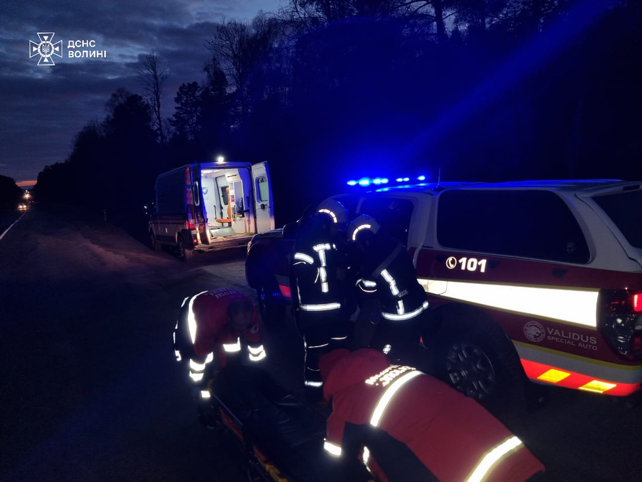 Сьогодні о 16:50 на лінію 101 надійшло повідомлення про те, що в лісі поблизу селища Маневичі чоловік, який разом з дружиною вирушив по гриби, травмував ногу й не міг самотужки пересуватися.