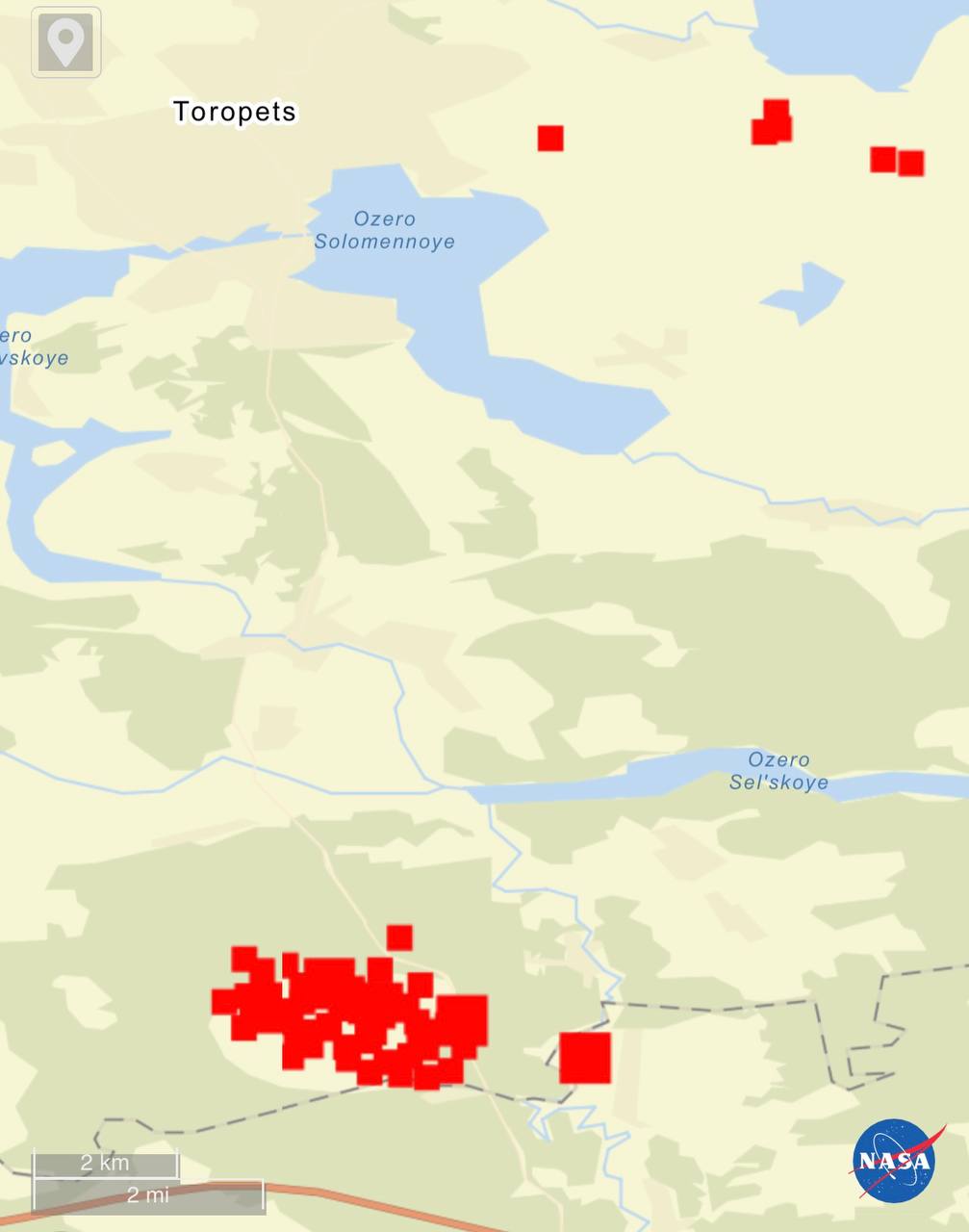 Крім того, про атаку БпЛА заявили і у Тверській області, жителі Торопця і найближчих населених пунктів чули вибухи.За даними Astra, 23-й арсенал ГРАУ атакований безпілотниками в селищі Жовтневому Тверської області.107-й арсенал ГРАУ в Торопці догорає (той, що зверху). Уражений 23-й арсенал ГРАУ (на фото нижче).