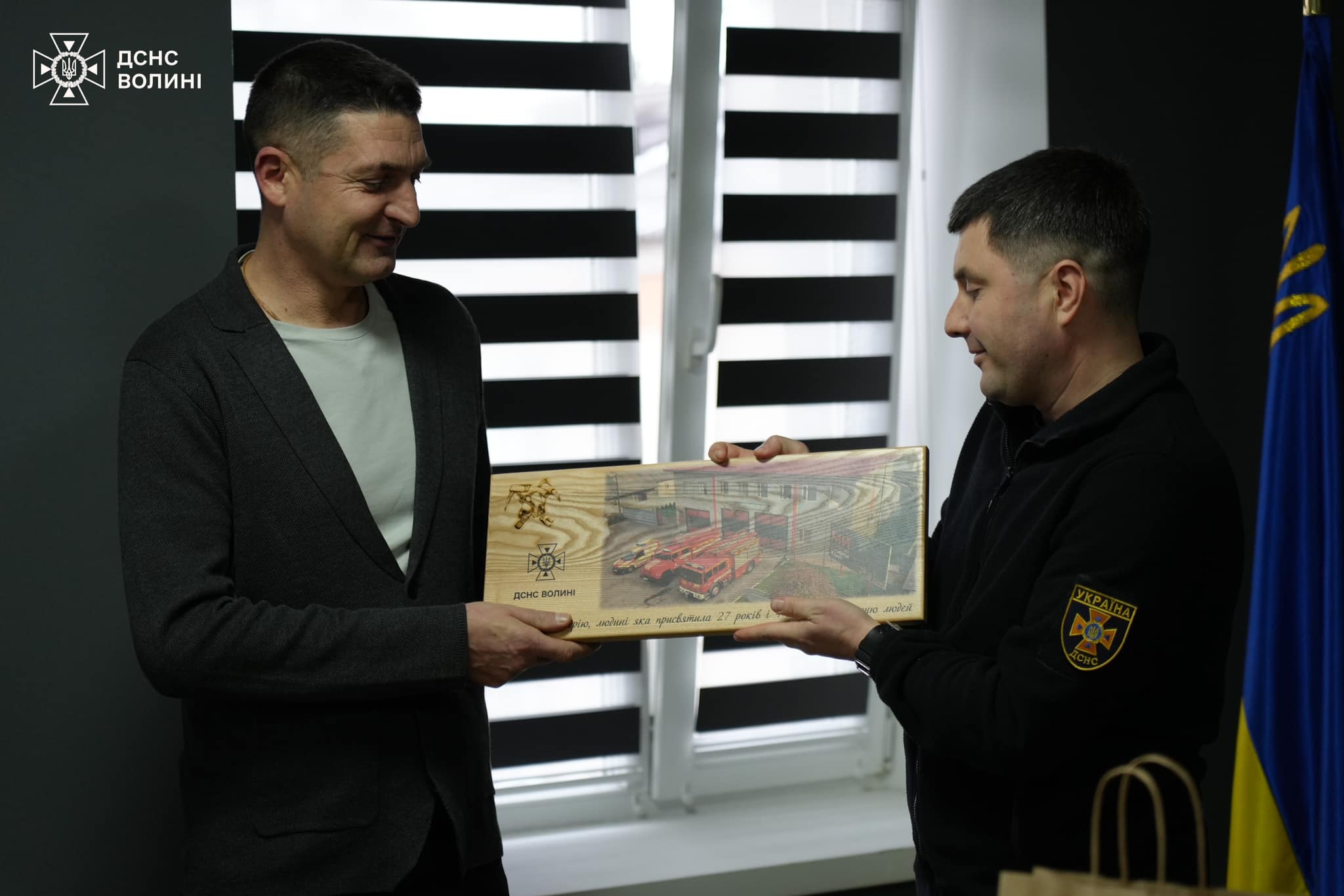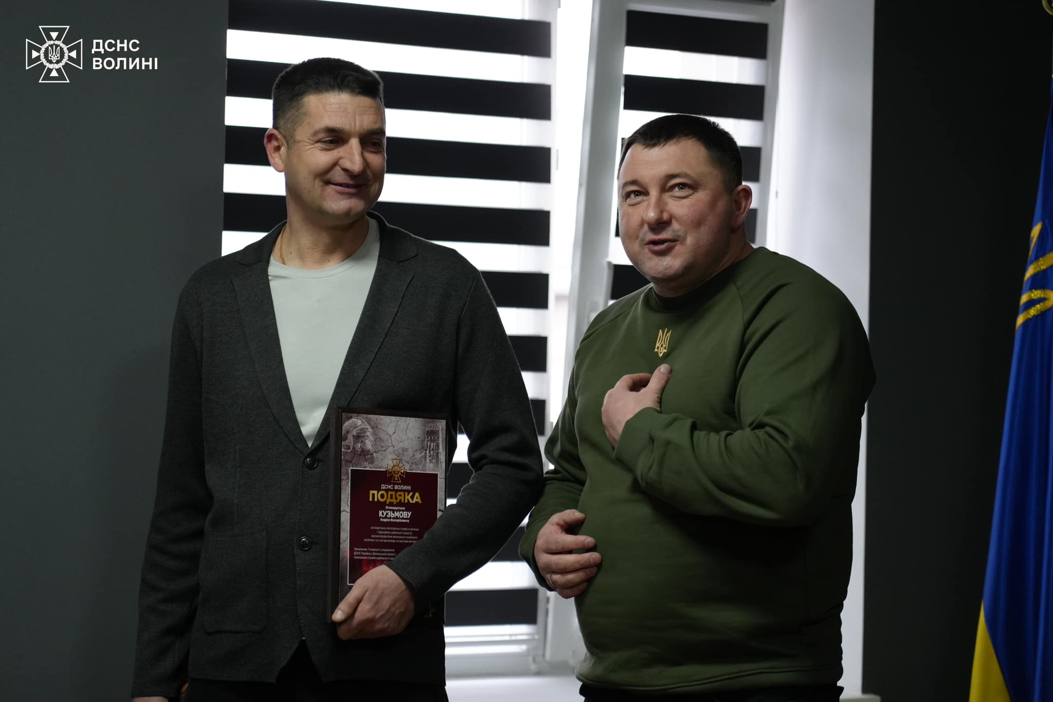 З нагоди виходу на заслужений відпочинок начальника 6 Державної пожежно-рятувальної частини м. Ківерці підполковника Андрія Кузьмова головний рятувальник Волині Мирослав Дем'янчук подякував йому за багаторічну бездоганну службу, високий професіоналізм та сумлінне виконання службових обов’язків.