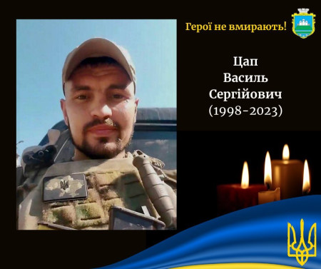 Стало відомо про загибель вірного Захисника, хороброго Героя із села Осівці – Цапа Василя Сергійовича, 1998 року народження.