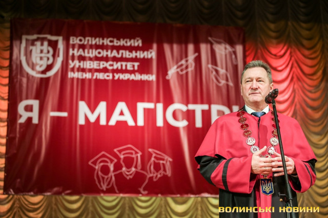 Сигнал повітряної тривоги змістив початок вручення дипломів випускникам. Ректор ВНУ Анатолій Цьось у своєму вітальному слові наголосив, що урочистому врученню дипломів тривоги не завадять, тому що українці всі справи доводять до переможного завершення. Він розповів про досягнення університету, зауваживши, що тепер 1662 магістри працюватимуть на розвиток нашої держави.