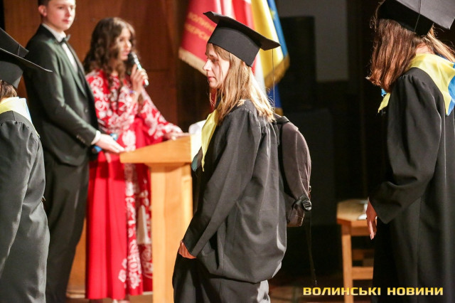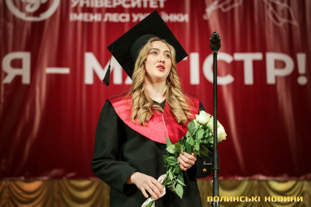 «Ви обрали освіту в час війни задля перемоги, адже ви прийшли вчитися, щоб бути у країні переможців. Україна має перемогти клятого агресора – Росію. Пройдуть десятиліття і ви розповідатимете, як завершували навчання в потужному університеті. Найголовніше, що я сьогодні хотіла вам сказати: нині потрібний соціальний контракт між вами і суспільством про те, що ви свідомі у відбудові української економіки. Я сподіваюся, що 1662 магістри ВНУ – це потужна сила, яка створить прорив», – сказала Ірина Констанкевич.Від представників влади – голови Волинської обласної ради Григорія Недопада та заступниці Луцького міського голови Ірини Чебелюк – також звучали вітання для магістрів. Вони побажали випускникам знайти себе та закликали долучатися до відбудови незалежної та вільної України, коли ми здобудемо перемогу.Після вітань випускники нарешті дочекалися найурочистішої та найсвятковішої для них миті – вручення дипломів, які свідчать про те, що вони здобули освітньо-кваліфікаційний рівень магістра. Кожен з факультетів ВНУ почергово отримував дипломи та привітання від своїх близьких.Цікаво, що деякі випускники навіть на урочистість прийшли з портфелями та рюкзаками, не відпускаючи студентське життя.Однак підкинуті вгору академічні шапки все ж символічно сповістили про завершення шляху магістра у Волинському національному університеті імені Лесі Українки.