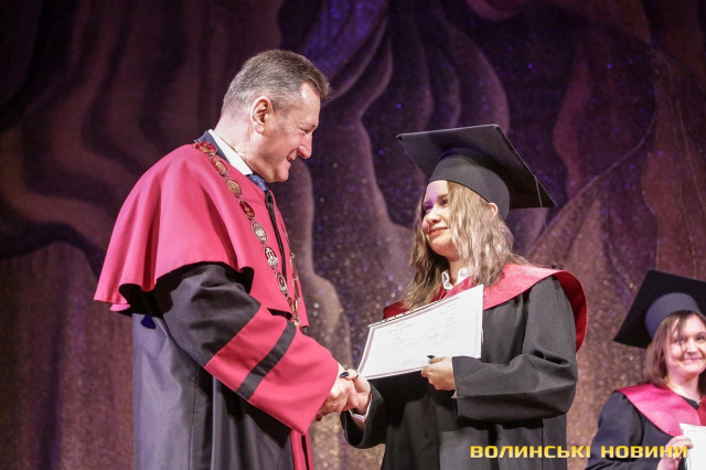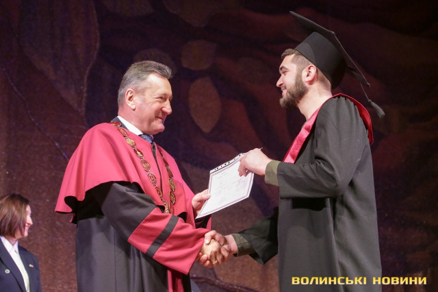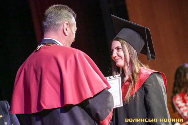 До цього диплому разом з викладачами магістри йшли майже півтора роки. Привітати їх до Волинського облмуздрамтеатру прийшли батьки, близькі, друзі, духовенство, професорсько-викладацький склад та представники влади.