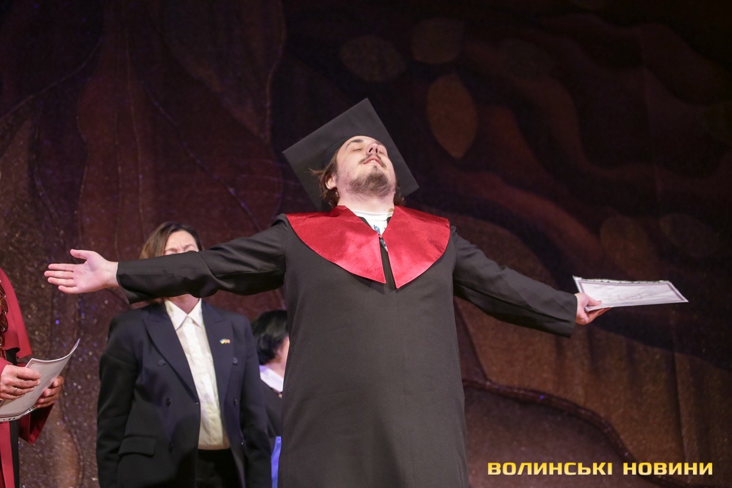 До цього диплому разом з викладачами магістри йшли майже півтора роки. Привітати їх до Волинського облмуздрамтеатру прийшли батьки, близькі, друзі, духовенство, професорсько-викладацький склад та представники влади.