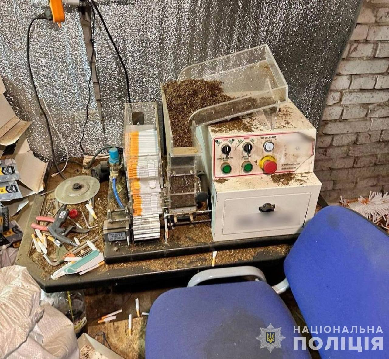 Підпільну мануфактуру викрили оперативники управління стратегічних розслідувань у Волинській області спільно зі слідчими слідчого управління обласної поліції. Виробництво цигарок ділки розмістили у гаражному приміщенні на території приватної садиби в одному з сіл регіону, де облаштували лінію зі спеціальним обладнанням.