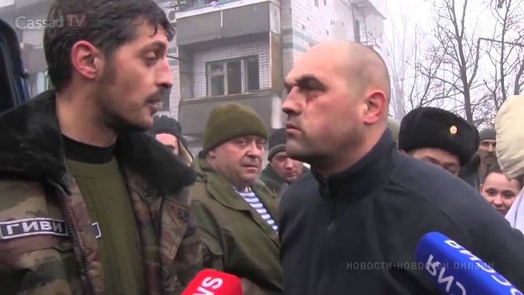 Брат народного депутата Сергія Кузьміних Олег (праворуч) під час перепалки з бойовиком «Гіві» в полоні після оборони Донецького аеропорту, січень 2015 року