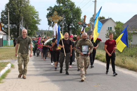 Учора жителі стоячи на колінах зі сльозами на очах зустрічали 30-річного бійця, який на щиті востаннє повертався до рідного дому. Чин похорону звершили духовенство громади у Свято-Георгіївському храмі. Поховали українського захисника на місцевому кладовищі у рідній Черевасі під звуки Державного Гімну України з усіма військовими почестями.