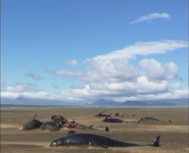 На берег ісландського півострова Снайфедльснес викинуло 50 чорних дельфінів. Вони більш відомі як грінди.