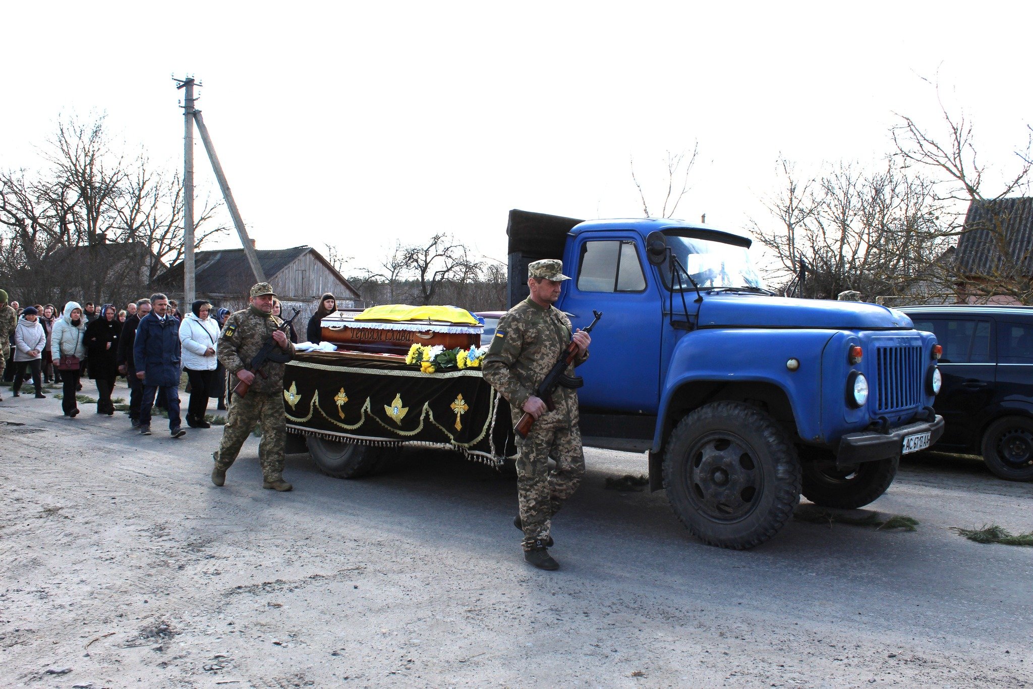 Поховали Героя Валентина Волошина з усіма почестями під залпи почесної варти та Державний Гімн України на сільському кладовищі.