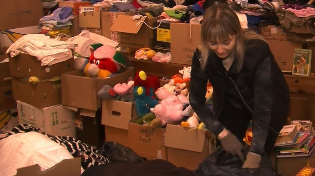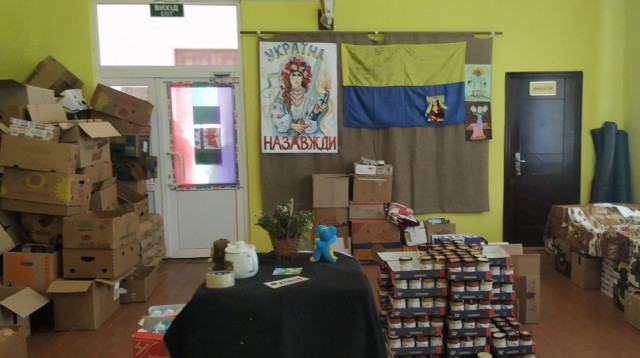 Десятеро волонтерів щоденно формують гуманітарну допомогу, яка надходить з Німеччини, Польщі, Швеції та Італії. Серед волонтерок – Надія Княжева. Жінка каже: переселенцям раз в місяць видають засоби гігієни, продукти – раз у два тижні.Місцевим волонтерам допомагають й самі переселенці. Вони сортують речі та розбирають вантажі.